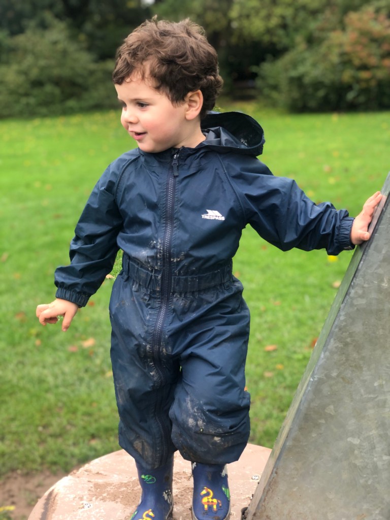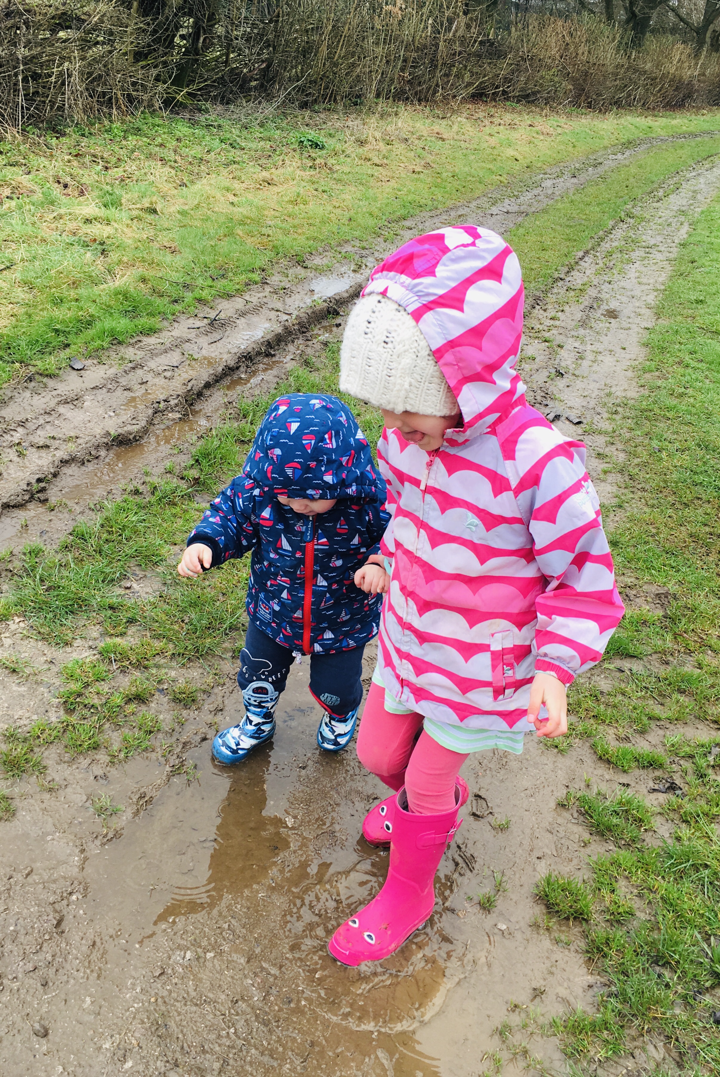 Start with the right outdoor gear, look at the weather forecast and plan your outdoor wear appropriately, I always opt for wellies and a raincoat, that has good wind proofing too, for those chilly spring time breezy days. Children and adults should wear wellies, never missing the opportunity for puddle stomping or getting stuck in to a little messy play. Raincoats with lining are best, but using layers underneath such as fleeces, cotton sweaters do just as good a job, and a huge thumbs up to children’s waterproof all-in -ones, they are amazing! I personally recommend Trespass for their All-in-One suits for children. They are very reasonably priced and do a good job of protecting the entire underclothing of the child as well as breaking the wind.
